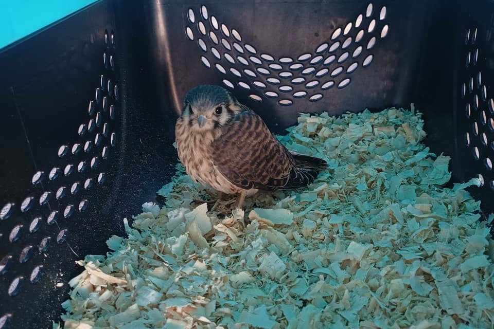 Otro ejemplar que llegó a manos del CCVS fue un halconcito colorado (Falco sparverius) un ave rapaz común de San Luis. mide alrededor de 30 centímetros, tiene un “bigote” negro y alas puntiagudas. Puede diferenciarse de otros halcones por su menor tamaño; el dorso rojizo barrado de negro. Frecuenta zonas serranas y pastizales. Suele posarse en postes o sobre puntas de árboles; es un ave solitaria. Anida en agujeros de árboles y cornisas de bardas y paredones. Puede residir en zonas urbanas y suburbanas. Caza ratones, lagartijas y pájaros pequeños.