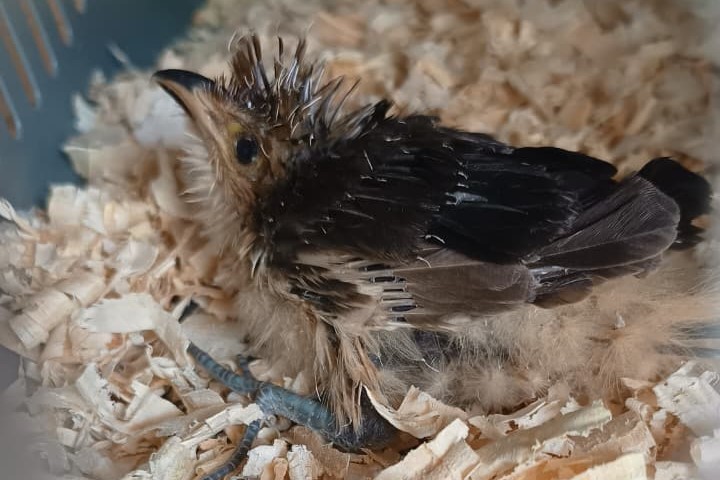 Otro recién llegado desde Villa Mercedes fue un pirincho (Guira guira) con sus patas heridas. Es un ave muy común en San Luis, reconocida por su copete despeinado, canto ruidoso y dieta carnívora (insectos, lagartijas, ratones). Habita en zonas abiertas y es famoso en la cultura popular sobre su supuesta capacidad para predecir el clima, y se lo considera un símbolo de buena suerte.