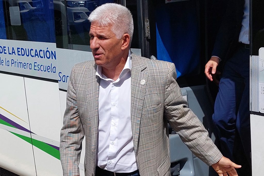 El primer mandatario provincial Claudio Poggi visitó la Escuela N°76 ‘Luisa Quiroga de Lucero’ en San Pablo y presentó la herramienta educativa-ambiental que recorrerá los establecimientos escolares de toda la Provincia.