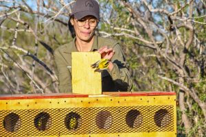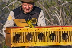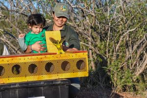Fundación Temaikén, Aves Argentinas, Agencia de Parques Nacionales y la Secretaría de Ambiente y Desarrollo Sustentable se unieron para una nueva liberación de la especie cardenal amarillo Gubernatrix cristata, que reside en los amplios espacios de la tierra colorada de Sierra de Las Quijadas y el norte provincial.