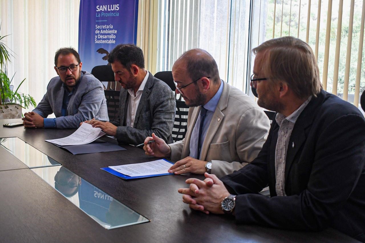 En un encuentro realizado en Casa de Gobierno la casa de altos estudios y la cartera ambiental formalizaron un nuevo acuerdo técnico que refuerza el trabajo conjunto para estudiar y preservar la biodiversidad sanluiseña. El encuentro fue encabezado por el secretario de Ambiente y Desarrollo Sustentable, Federico Javier Cacace y el rector de la Universidad Nacional de San Luis, Raul Gil. También participaron el director de Biodiversidad, Daniel Berro y el secretario de Ciencia y Tecnología de la UNSL, Fabricio Cid.