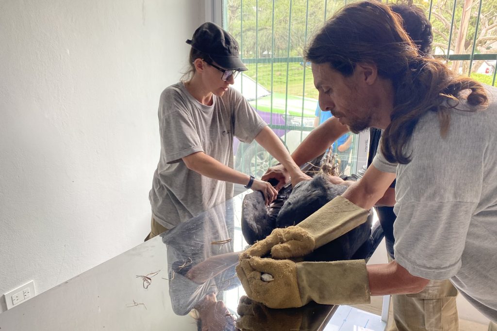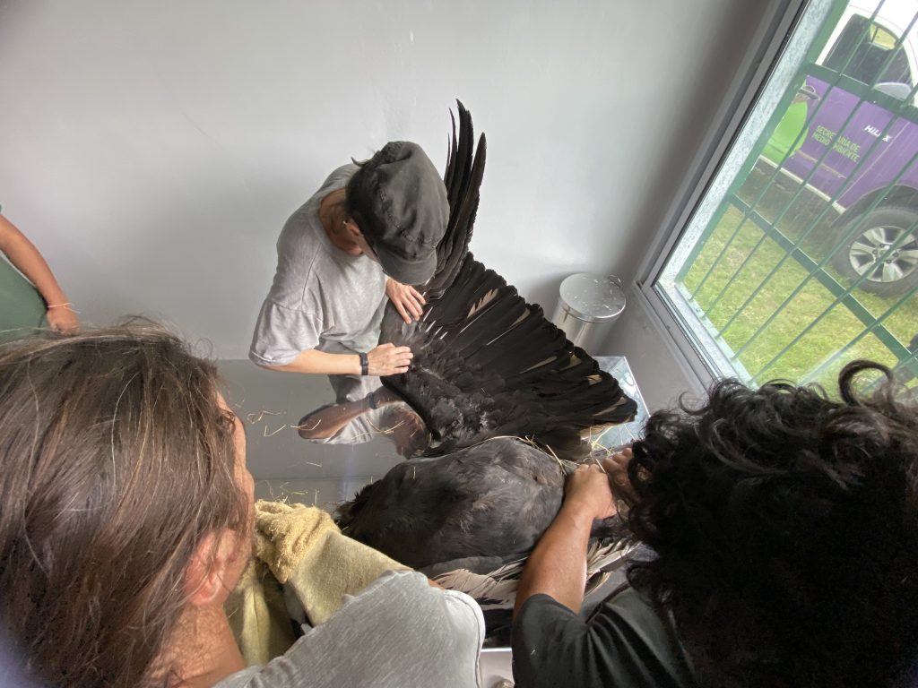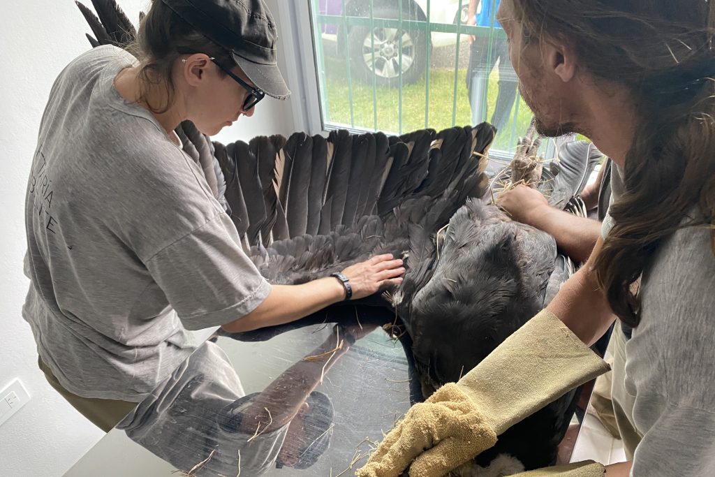 En la Reserva Floro Faunística de La Florida, se le practicaron las primeras curaciones y se le administraron antibióticos y analgésicos. “El ave respondió rápidamente y de manera favorable. Comenzó a alimentarse, se mostró activa, se acicala, extiende las alas y toma sol. Actualmente continúa con medicación por boca y su estado de ánimo es positivo” afirmó la médica veterinaria del Centro de Conservación de Vida Silvestre, Andrea Gangone.