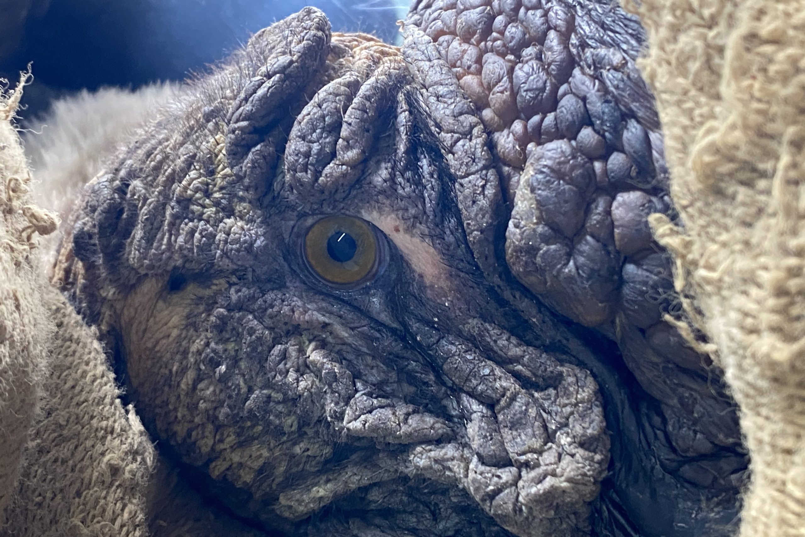 Es un macho adulto y una familia de lugareños le dio los primeros socorros, recibiendo las primeras limpiezas con curabichera, producto veterinario, comúnmente en aerosol, que es utilizado para tratar y prevenir la miasis (bicheras) y curar heridas en animales.